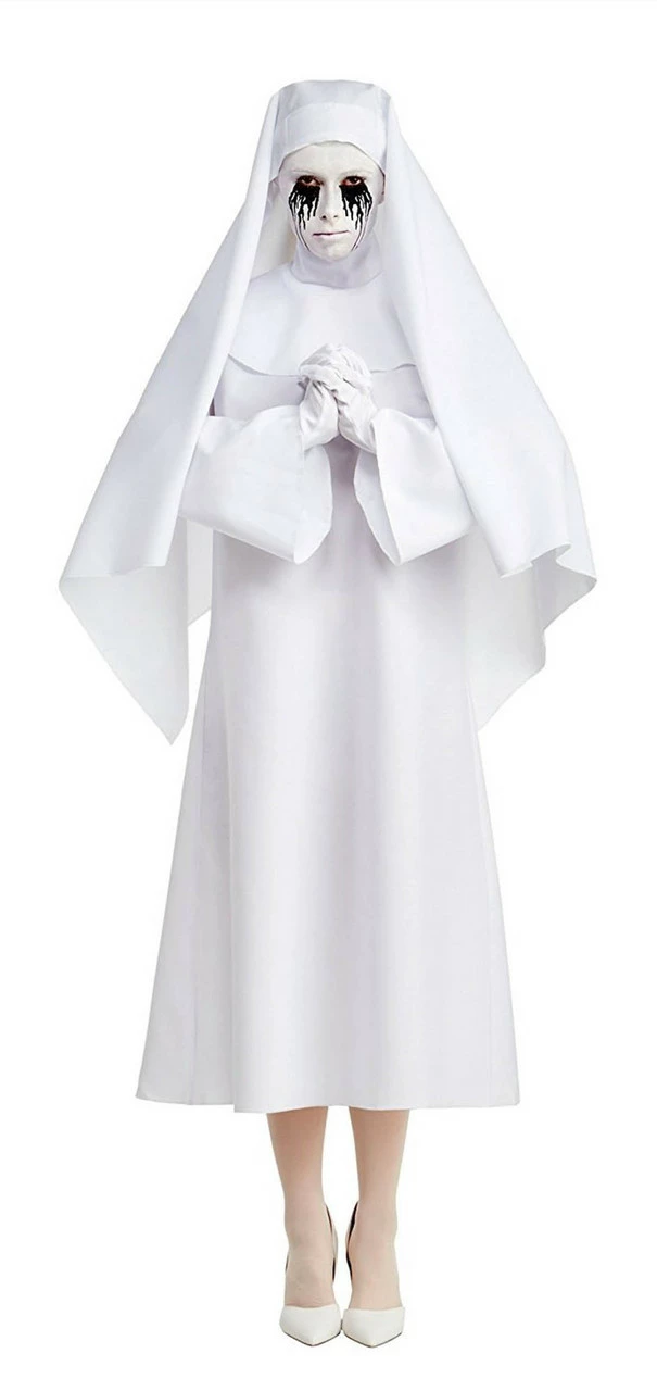 This Halloween, scare your friends as the white nun from American Horror Story! This spooky costume features the white nun robe and headpiece.