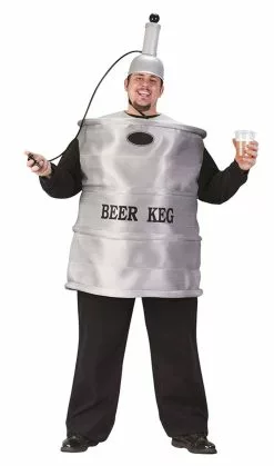 Get the party started and become everyone’s new best friend dressed in this full-on fun Beer Keg Adult Costume! The silver body keg is soft yet maintains its cylinder shape and provides openings for the arms, head and legs. It’s topped off with a silver helmet that’s shaped as the tap with an attached pump. The best part’s it actually holds up to 400 ml. of any beverage! Party’s on!