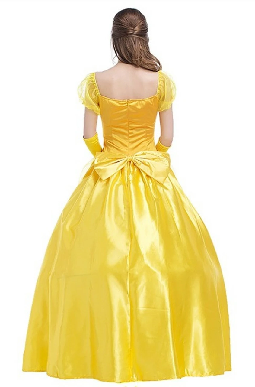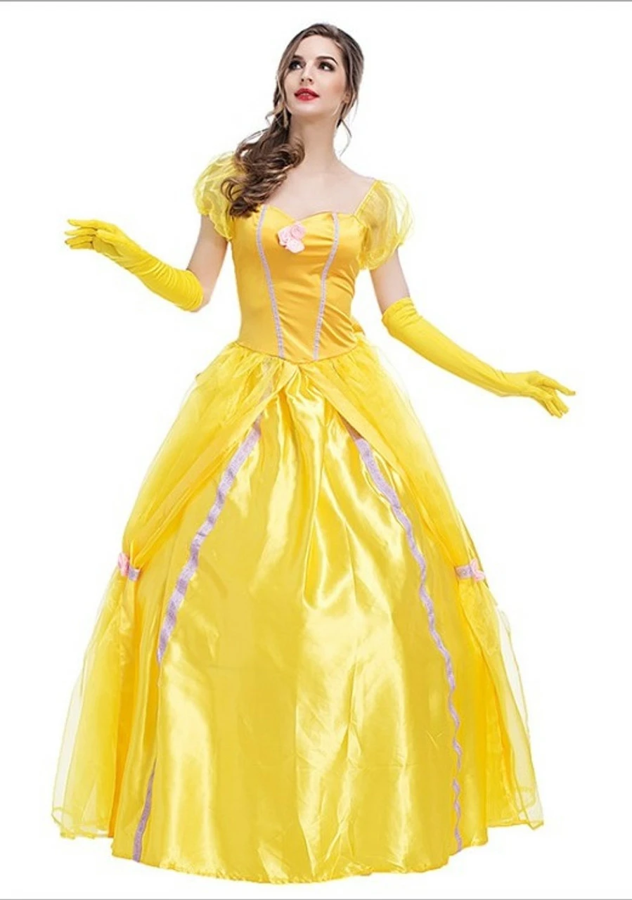 Tale as old as time, true as it can be… You can feel as beautiful as Emma Watson dressed up as Belle with this Belle gown, which features a lovely puffy sleeves yellow dress orated with cute little pink roses on the chest and matching yellow gloves. You’ll be living in a true fairytale!