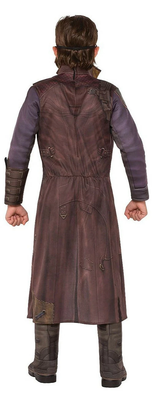 Your child can become the fearsome Yondu from Guardians of the Galaxy with this officially licensed costume featuring a detailed, dark purple muscle chest jumpsuit with an attached long brown coat with the Ravagers logo, and a decorative, sewn-on dagger on the cuff, attached detailed brown boot tops, and a detailed Yondu facemask. Any young Guardians enthusiast will love this costume!