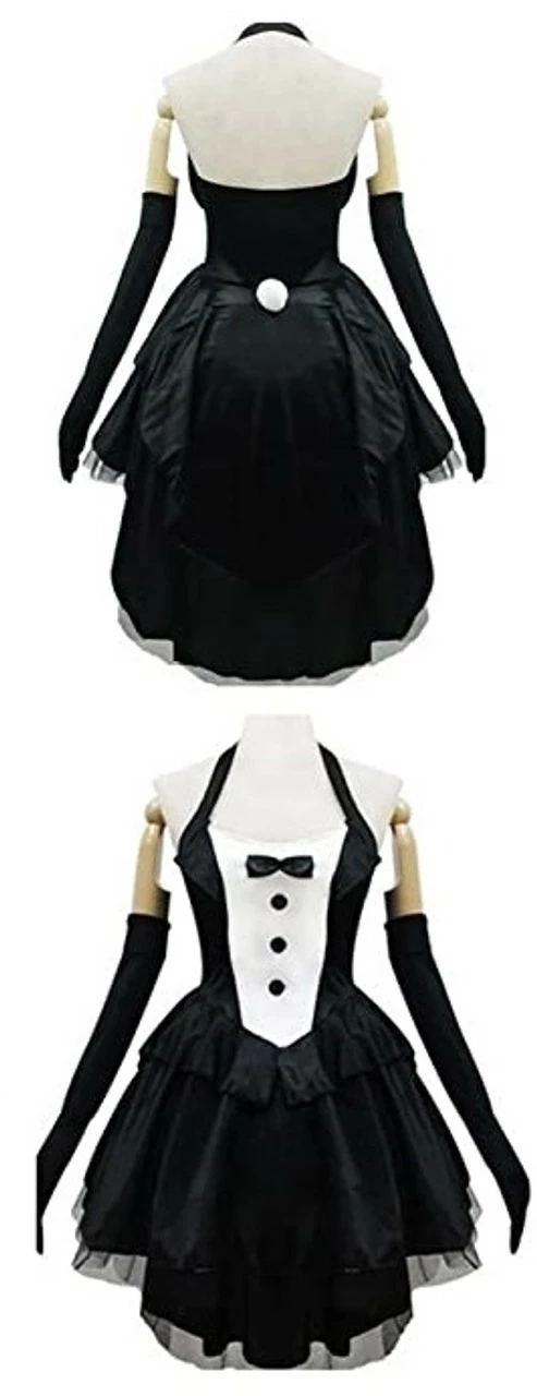 You will be sure to have all eyes on you with this costume. The dress features a corset style top, the dress has a tulle overlayer paired with a bow tie and a business casual tuxedo design with long tuxedo tails at the back of the dress.