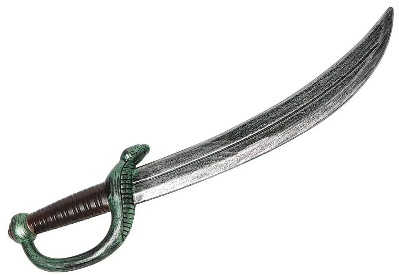 You can’t fight battles without a sword! This Cobra Sword 20in is the perfect accessory for any pirate to protect yourself while sailing the Seven Seas. The sword features a silver plastic blade with brown handle and green cobra wrapped around it.