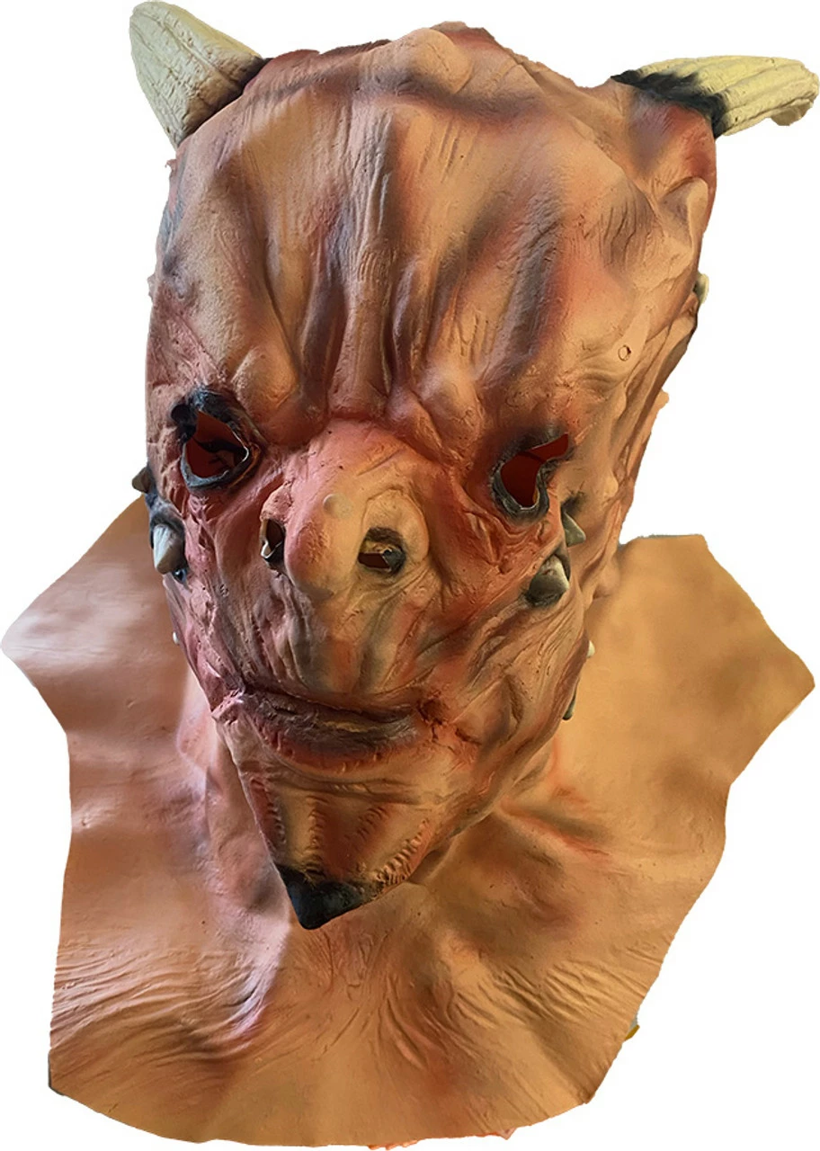 Be the creepiest beast there is wearing this mask! Creepy Beast Latex Mask features a full latex mask with 4 horns and spikey facial features. The expression is scary and aged with contrasting black tones and a unique pattern.Â