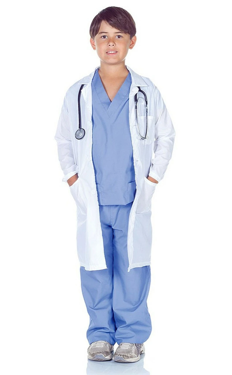 The Doctor is in the house in this Doctor Scrubs with Lab Coat Costume. The blue shirt follows the classic uniform cut and combines perfectly with the matching pants. The white coat is the ultimate addition to the costume and will transform your little one into a great doctor.