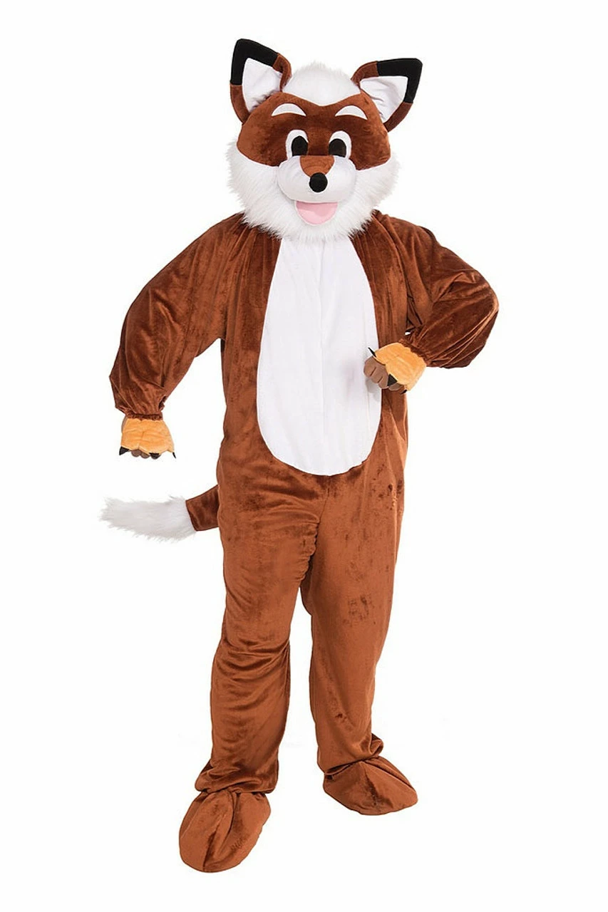 Cute, cuddly, and comfortable, this fox mascot will be perfect for parades, festivals, and of course, Halloween! This costume features a soft fox jumpsuit with a fuzzy tail and pockets, attached shoe covers, and a fox headpiece with a friendly smile and white faux fur.