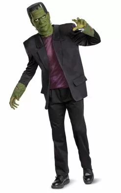 Celebrate the 90th anniversary of this Universal Monster’s classic silver-screen this Halloween! Why not dress up as the misunderstood monster Frankenstein!Frankenstein Deluxe Adult Costume features a dark grey jacket with shorter sleeves and attached green fabric with detailed stitches to give the appearance of his gnarly green skin! The purple undershirt is attached to the jacket and to complete the look the costume comes with a full vinyl mask that is highly detailed to look just like Frankenstein himself!