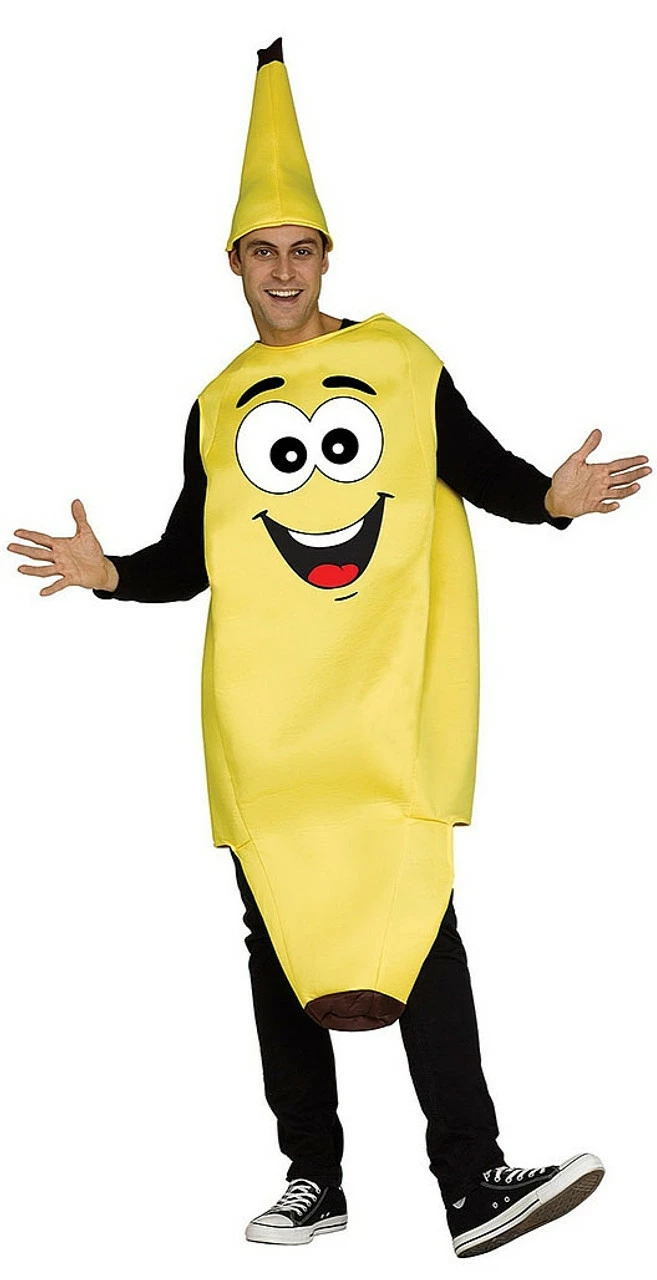 The Funny Banana Adult costume includes: