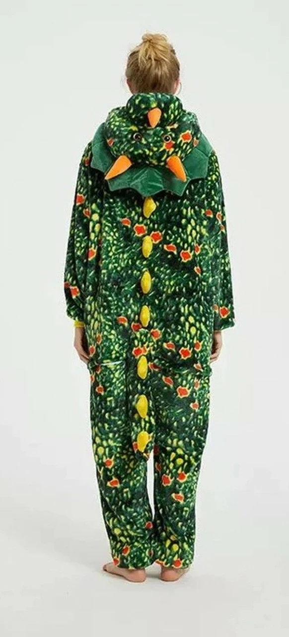 RAWR! You’ll love the Green Triceratops Onesie Adults Costume! This costume is a soft green Triceratops onesie with an attached hood and tail. The Triceratops onesie has orange and yellow detailing with a yellow belly and soft spikes along the tail!Â