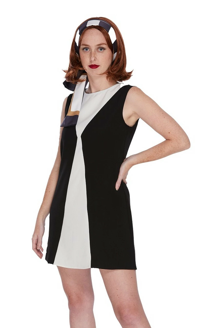 Add a Gogo boot and wear the scarf on the head, and you are set for your 1960’s and 70s mod look. Get the short red wig, and you are Beth Harmon ready to win the next chess match unfazed! The classic black and white dress can become an essential part of your wardrobe, to wear for the office, parties or get together.