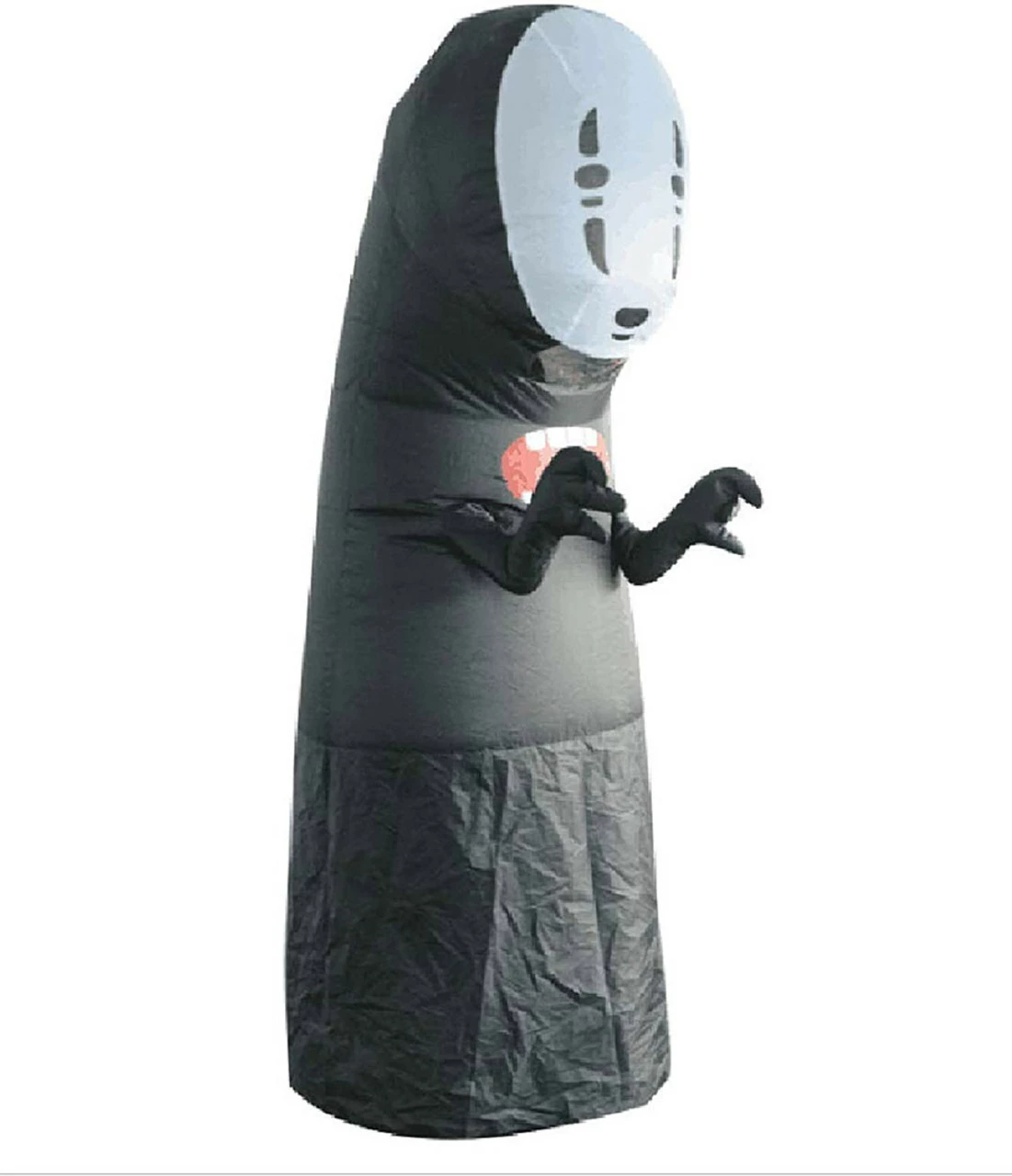 Do you want to be Kaonashi from Spirited Away this Halloween? Hiddenface Scary Inflatable Adults Costume features a Spirited Away inspired No Face character with a black cloak, toothy smile and white mask. This inflatable costume also includes a usb fan with battery pack to keep the costume inflated.Â