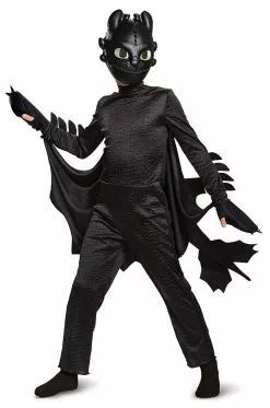 Become the world’s most adorable dragon with this Toothless Deluxe Child Costume! This officially licensed costume from How to Train your Dragon 3 features the black character jumpsuit with dragon details on the sleeves, a detachable tail and detachable wings, as well as character mask and a pair of dragon gloves.