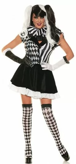 Be a fabulous star of the royal court in a stunning black and white puffy skirt and pattern top. You’ll entertain the crowd for the whole night! Top off this costume with a fun 2 color wig to finish the look.