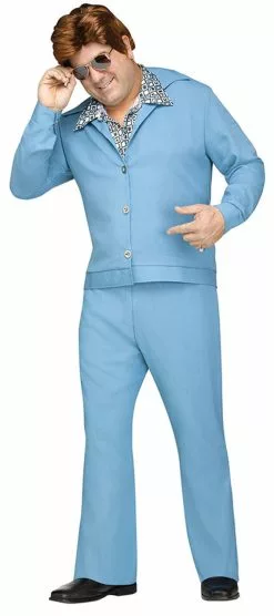 Do you remember how to boogie? This Leisure Suit Costume will be a throwback to the 70s! Leisure Suit Costume features a blue suit jacket with an attached under shirt. The under shirt can be see at the collar and has a funky pattern, the matching blue pants complete the look.