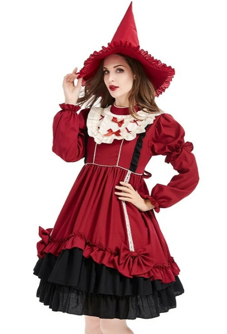 Turn yourself into a cute Lolita woman with this adorable red and black layered dress featuring a white chest piece and super cute ruffle trims. It comes with a cute red bow for your head and will look perfect with your favourite red lipstick and your favorite pair of black heels (not included). Being a girl is too average, be a Lolita!