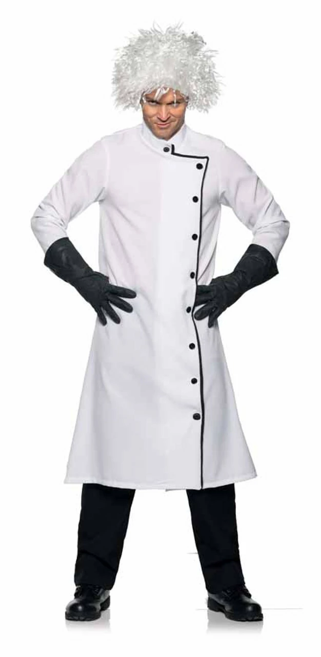You’ve got the genius, you’ve got the mad cackle, now all you need for your Mad scientist costume is this Mad Scientist Lab Coat Adult Costume! The Mad Scientist Men Costume features a mid length white tunic with a high collar, and a black trim and buttons on the side. It comes with the black pants. Just add the scientist gloves to start your own experiments but please don’t blow up the lab!Â