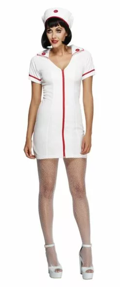 Stitch back broken hearts in this No Nonsense Nurse Women Costume! This form-fitting costume features a crisp white mini-dress with red stripe in the middle and short sleeves. It also includes this costume’s signature nurse’s hat, so you can bring people back to life in style!Â