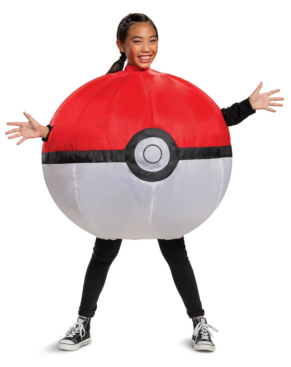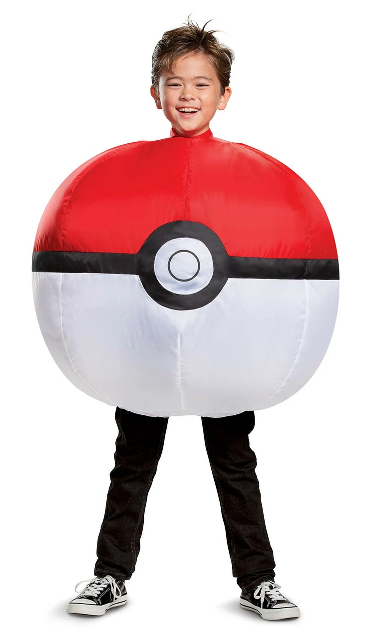 Try to catch and contain Pokémon while wearing this fun Inflatable Pokéball costume. The Pokee Ball Inflatable Pokeman Child Costume features an inflatable jumpsuit printed to look like the famous Poke ball with its red top, white bottom, and a horizontal black ring circling the ball. Sure to please costume for all Pokemon fans.