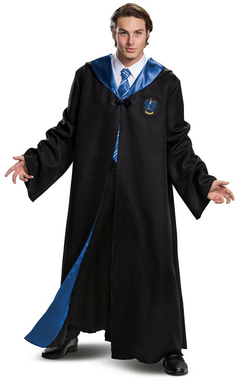 Every Harry Potter fan needs a robe to represent their house! Do you belong in Ravenclaw, where they value wisdom, intelligence, and wit? Known for loving knowledge, Ravenclaws are wise friends and great wizards. Show your house pride with this stunning, officially licensed Ravenclaw Adult Robe. The hood of the robe has a pretty blue lining and the blue and bronze Ravenclaw crest is visible on the chest; the robe also has a clasp.