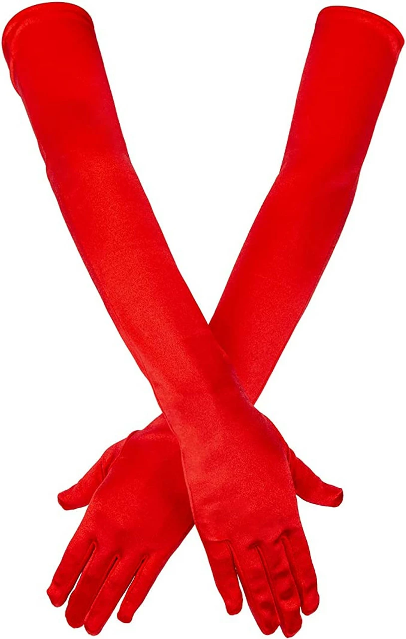 Our wonderful Miss Flapper or 20’s style costume won’t be complete without these stunning red gloves! Feel fabulous with these red glossy Satin Elbow Length Gloves ! The gloves can be worn with many other themes and outfits.