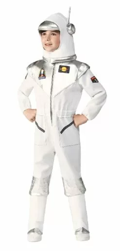 Is your kid obsessed with Space? Maybe they dream of being an astronaut one day! Let them live out their dreams in this Space Explorer Astronaut Kids Costume! This costume features a while jumpsuit with space badges and silver detailing with attached boot covers. The matching soft white and silver astronaut helmet complete the look!