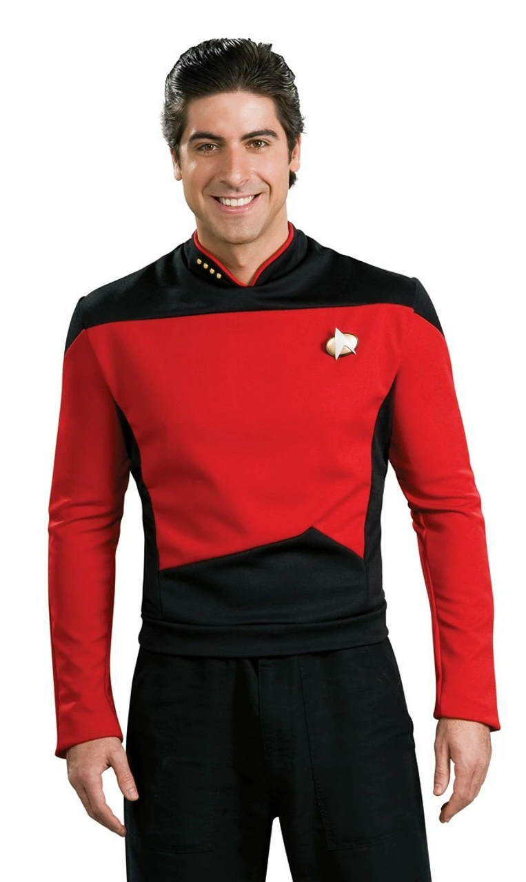 Dress up as one of the members of the famous crew of the starship Enterprise and explore more the mysterious wide space in this Star Trek Next Generation Commander Costume! This Star Trek-inspired clothing features a red and black shirt with red piping on the collar and communicator pin. It’s a great costume, especially for Star Trek fans, who want to imitate their favorite Star Trek character!