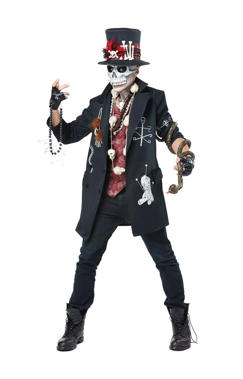 Be the master of mischief with this Voodoo detailed costume. You’ll know all the tricks to vanish your enemies and help your good friends, if they deserve it. This stylish vest and hat will make you the coolest voodoo skeleton in town.