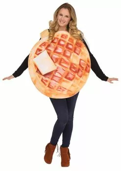 Are you someone who always wants desert for breakfast? This is the perfect breakfast costume! This Waffle Adult Costume features a realistic waffle print tunic with printed butter and syrup. This costume is easy to wear and perfect for anyone!