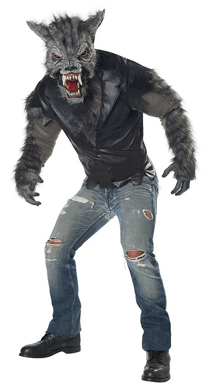 Want a costume that will spook your friends this Halloween? This Werewolf Full Moon Fury Man Costume will be perfect! It features a full front and back wolf mask, a black vest with combined faux fur sleeves and chest/collar and a padded vest under layer.